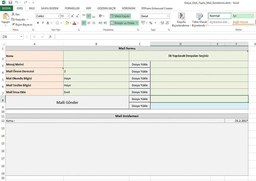 Merhaba arkadaşlar, bu makale de sizlere Excel'de derlediğimiz mail adreslerine toplu olarak ve her birine özel muamele ile outlook bağlantılı mail göndermeyi anlatacağım.