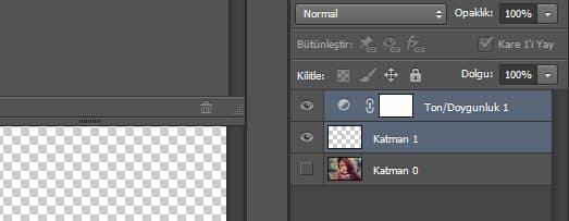 Yeni olunşan ton/doygunluk katmanı ile gözler katmanını ctrl tuşuna basılı tutarak seçiyoruz.