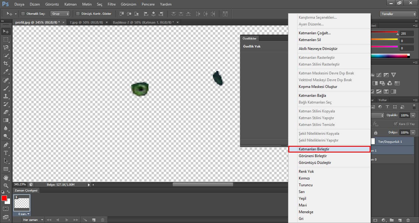 Sağ tıklayıp katmanları birleştir diyoruz.