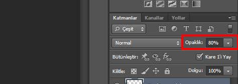 Aslında şu resmimiz hazır, fakat biraz daha resim içerisine oturmuş, daha gerçekçi bir görüünüm için göz katmanına gelip, saydamlık değerini kendinize göre ayarlayın. 80%'ler iyidir.