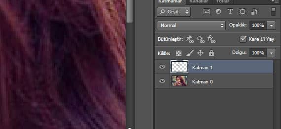 Seçtiğimiz gözleri ctrl+c > ctrl+v yaparak, yani kopyala yapıştır yaparak yeni bir katman olmasını sağlayın.