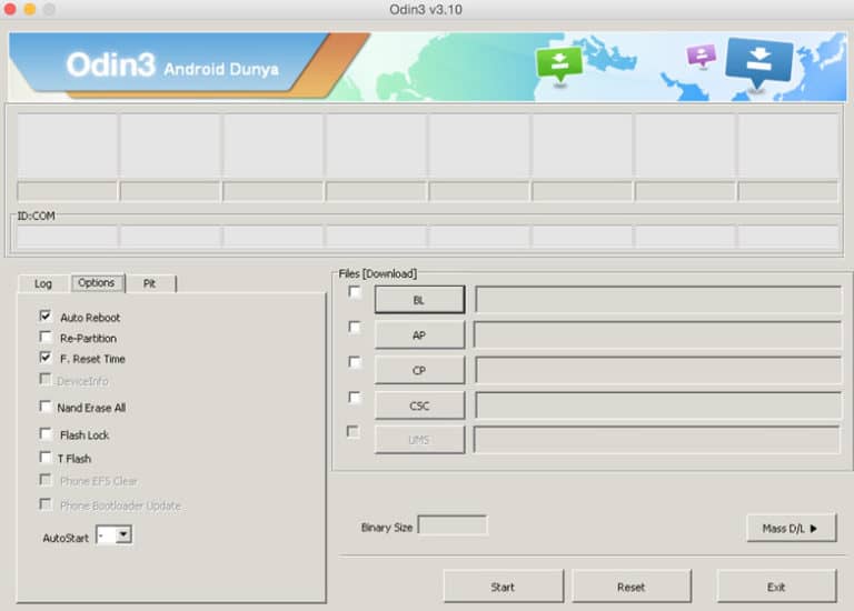 ZIP dosyayı açtığınız kılasöre gidiniz ve ODIN uygulamasını çalıştırın. Aşağıdaki gibi bir ekran gelecektir.