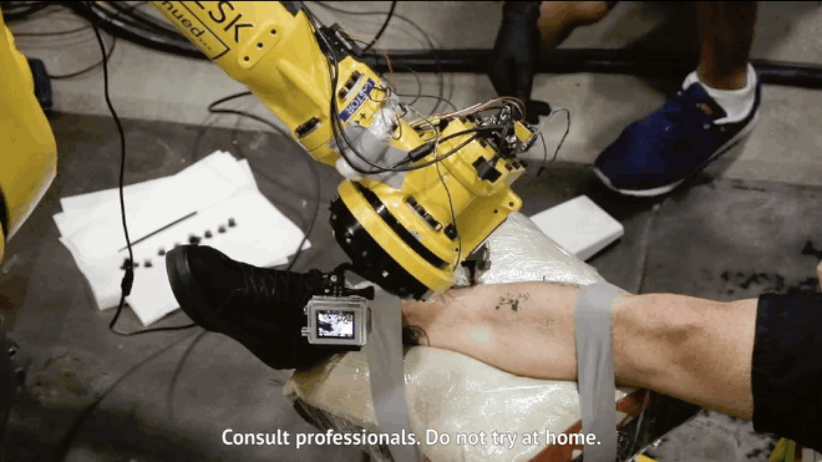Pier 9 isimli bir Vimeo kullanıcısı 'Endüstriyel bir robot tarafından Dünya'nın ilk dövmesi' isimli bir video paylaştı.Söz konusu videoda Fransız asıllı tasarımcılar Pierre Emm ve Johan de Silveira ile birlikte mühendis David Thomasson proje hakkında açıklamalar yapıyorlar.