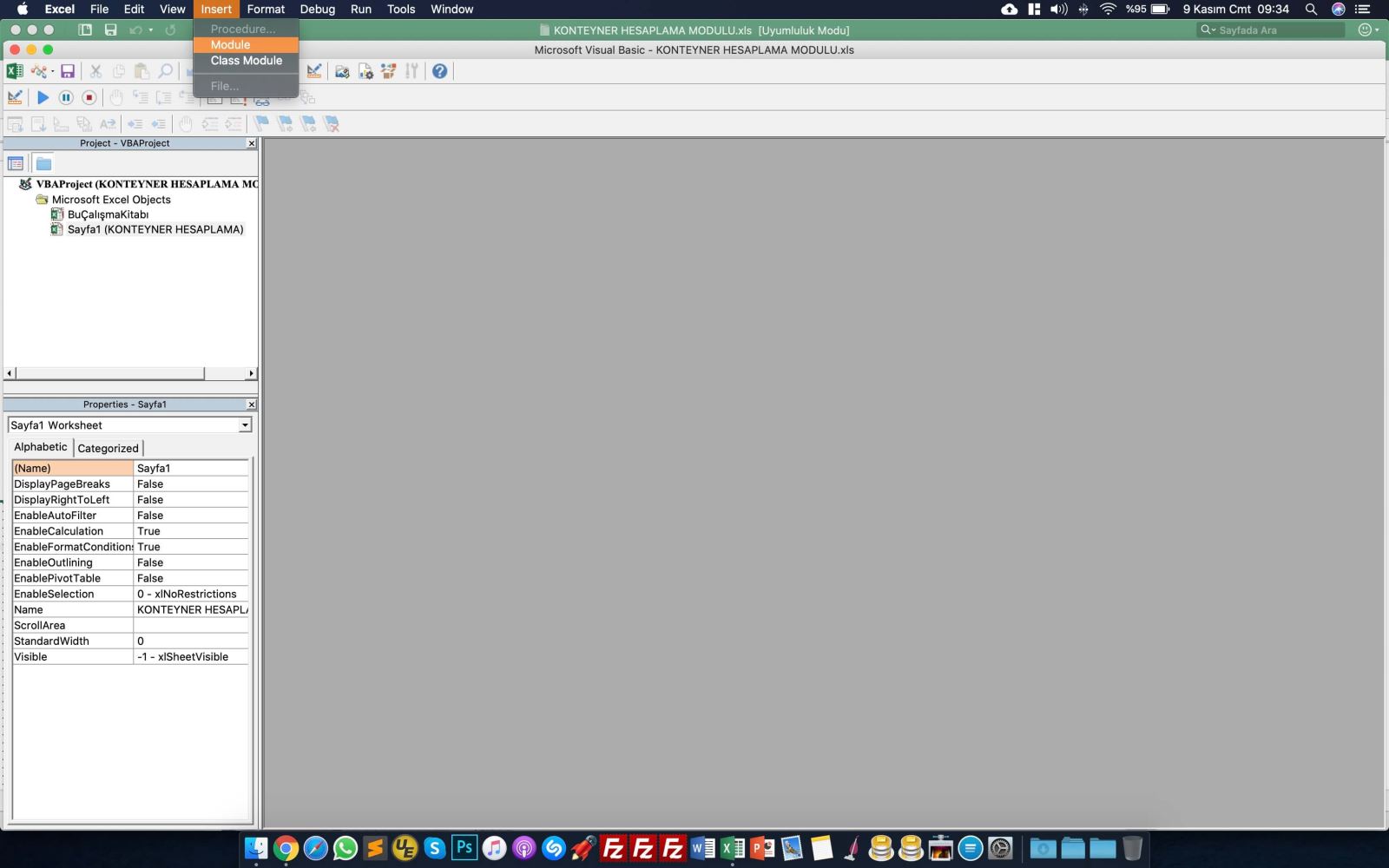 4. Visual Basic kod ekranında Üst menülerden İnsert içerisinden Module bölümüne tıklıyoruz.