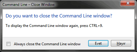 Komut satırı penceresini kapatmak istediğinize emin misiniz?